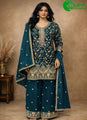 Attractive Teal Color Embroidered Work Chinon Salwar Suit