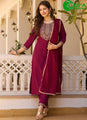 Grab the second look in this elegant attire for this season. Be ready to slip in the comfort zone of wine color rayon readymade salwar suit. This lovely attire is looking extra beautiful with embelishment of . Comes with matching dupatta.