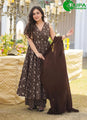 Brown Georgette Salwar Suit with Foliage Print Work for Ceremonial