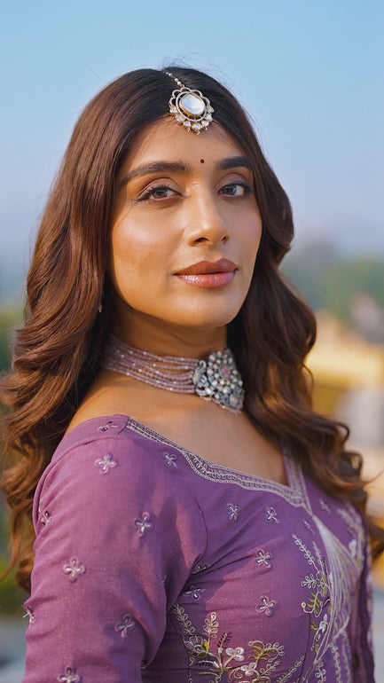 Enchant the mantra of being stylish in this attire. This lavender crush lehenga choli is accenting the gorgeous feeling. This attire is showing some really mesmerizing and innovative patterns embroidered with . Comes with matching choli and dupatta.